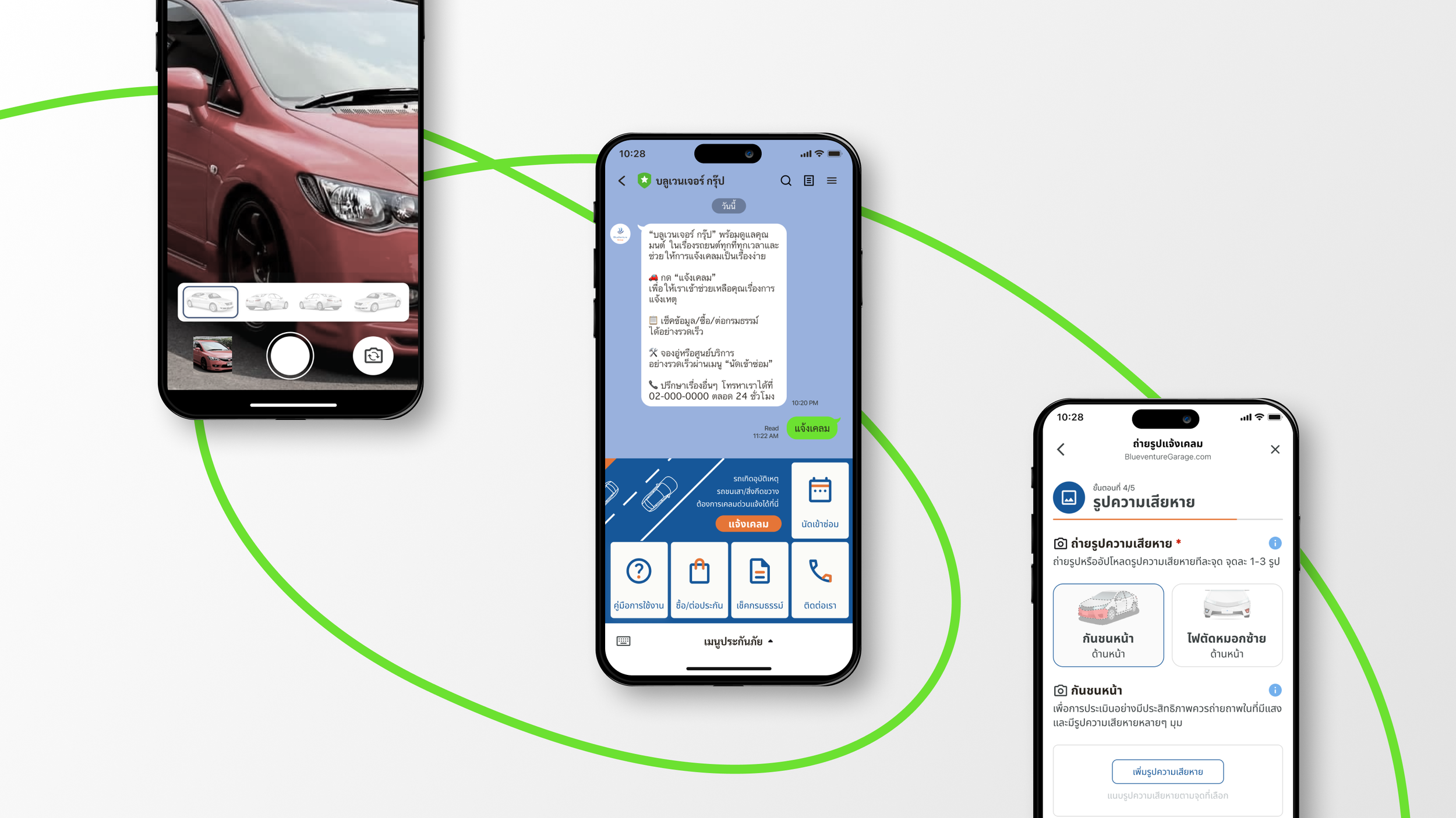 Line application is widely used in Thailand. This service will help those car owners start claim requests on their mobile phones via the Line mini app.